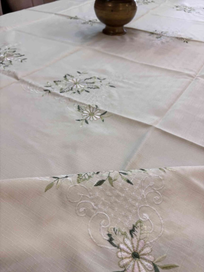 Floral Cream Embroidered Cutwork Table Cover