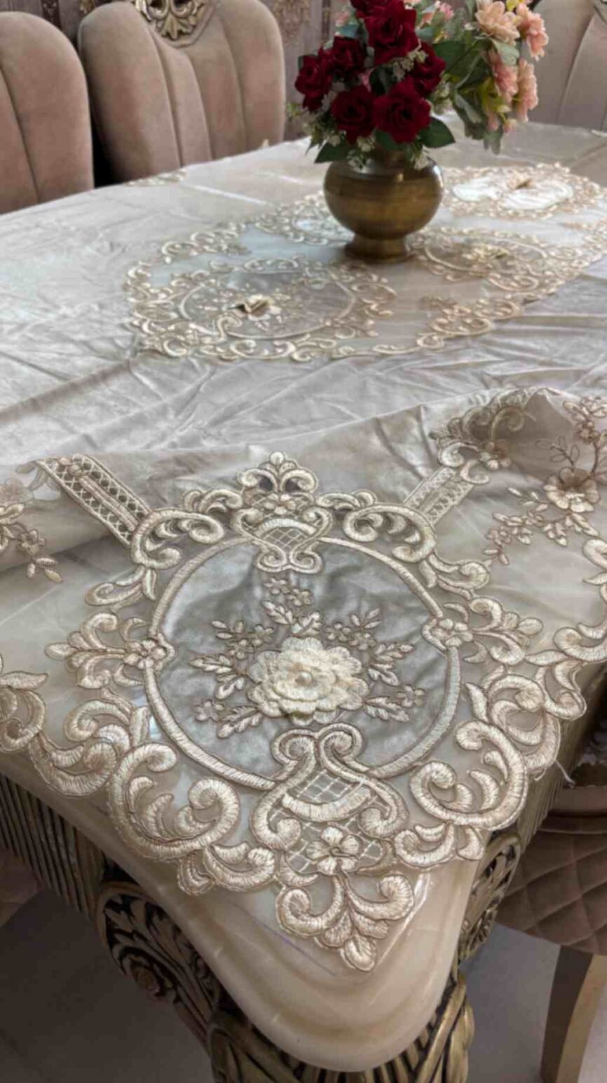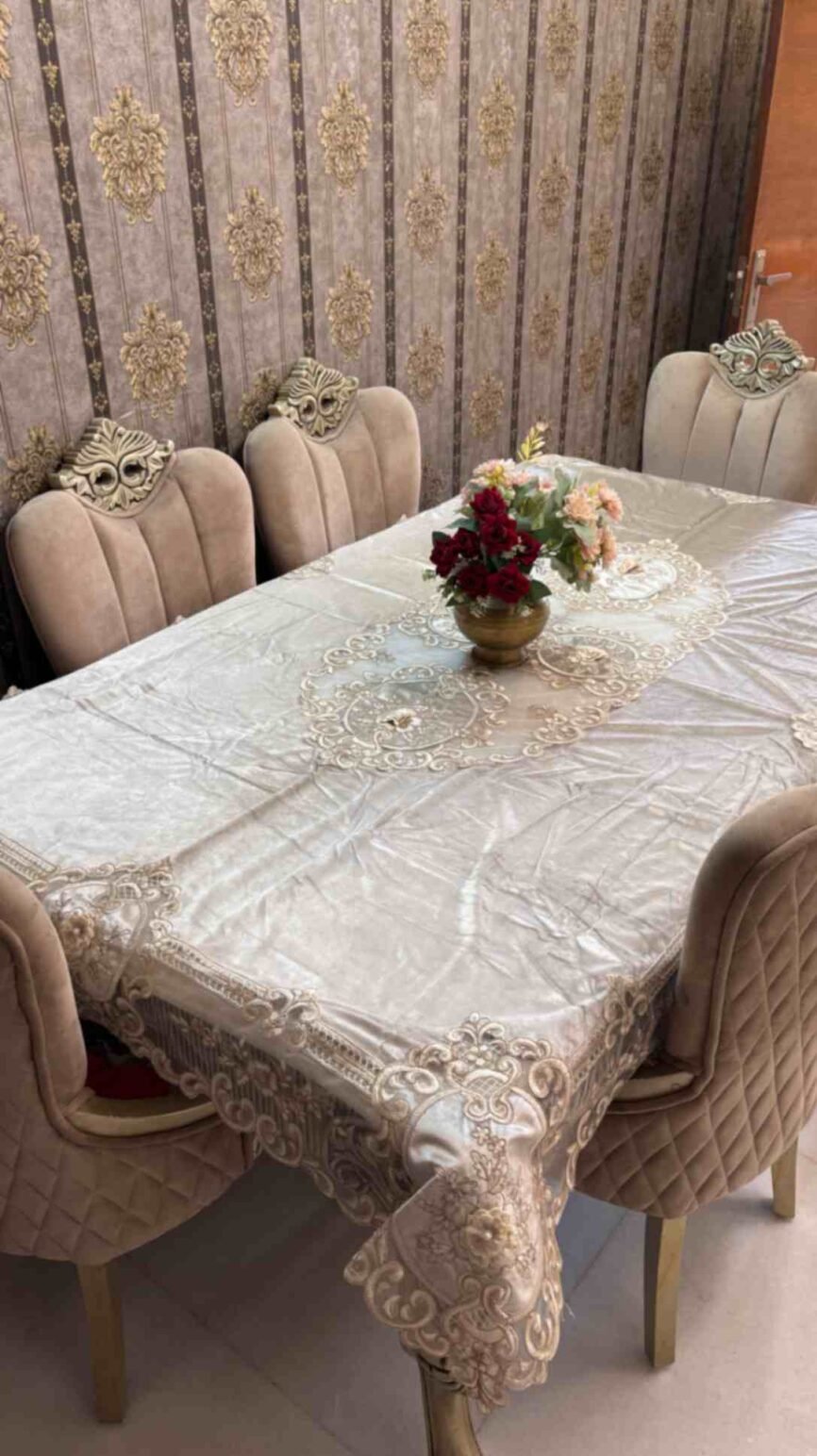 Enhance your dining space with designer table covers from Royal Handloom House. Our collection features elegant jacquard, intricate lace, and beautiful embroidered table covers perfect for 4 and 6 seater tables. Based in Jaipur, we offer premium quality textiles that add a touch of sophistication to your home. Shop online to find the perfect cover to protect and beautify your dining table.