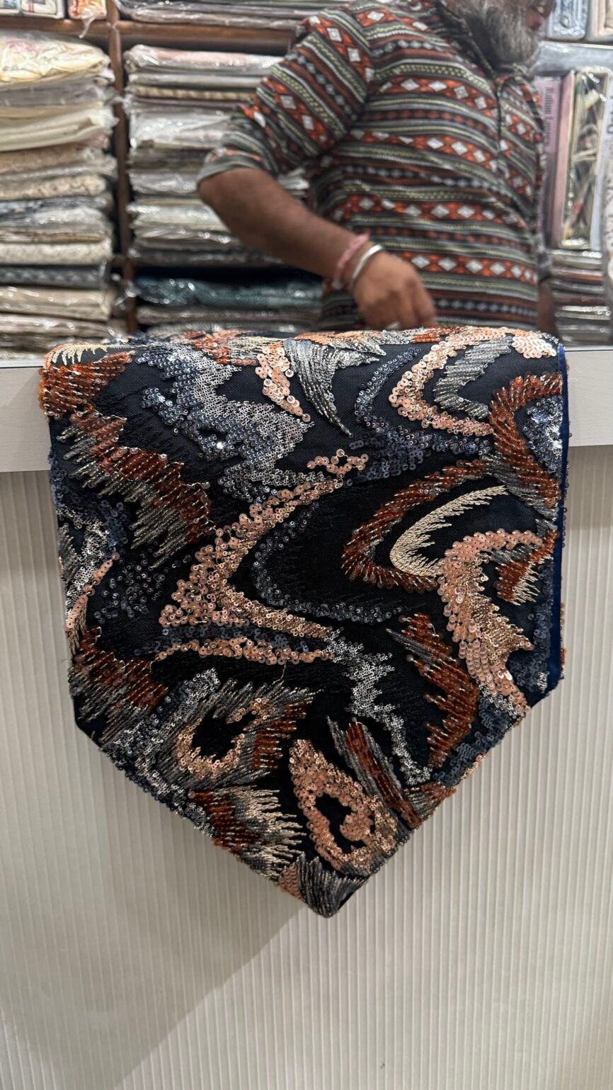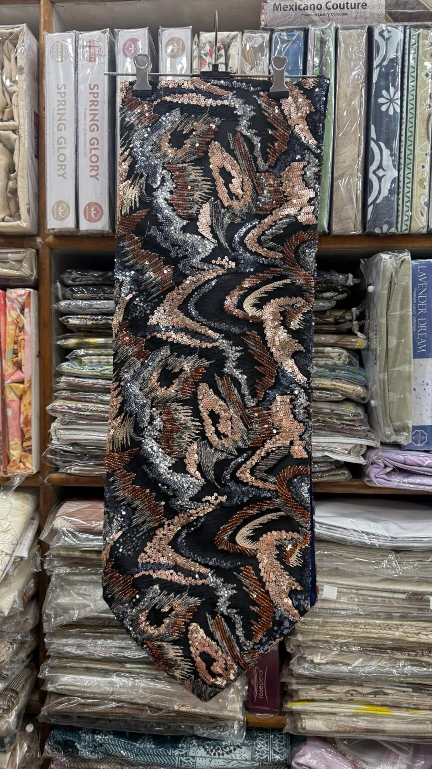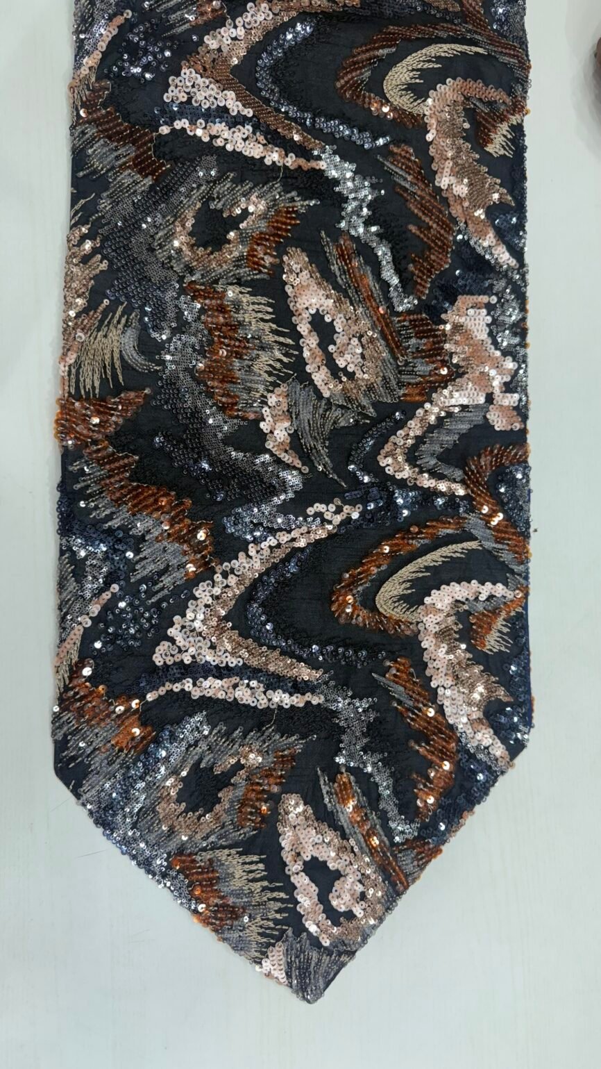 Sequin Table Runner 13 x 72 Inch – Black Multi Abstract, Luxury Party & Festive Dining